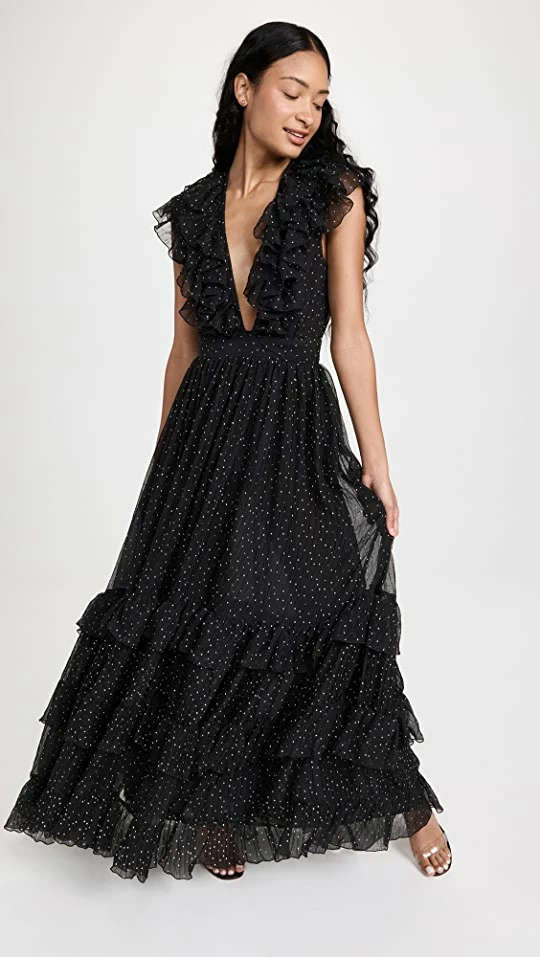 Best Pirce π€© ROKH Ruffle Detail Long π Dress Black π