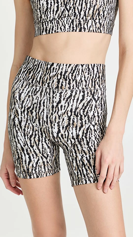 A sleek pair of All Access bike shorts in a low-key color scheme, accented with a classic tiger print. Wear yours with the label’s matching bra for the complete look.