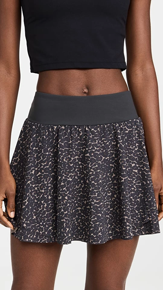 Fresh from the activewear specialists at Varley, this lightweight skort features a dense leopard print, ruffles in back, and subtle logo lettering at the waist.