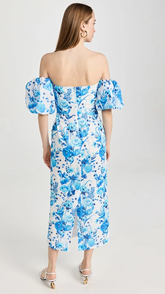 - Sweetheart neck and off-shoulder puff sleeves with elastic cuffs