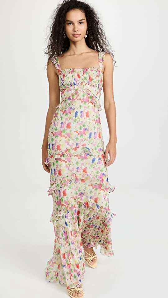 Brand new π House Of Aama Country Girl π Dress Taupe Floral Silk Dupioni π§¨