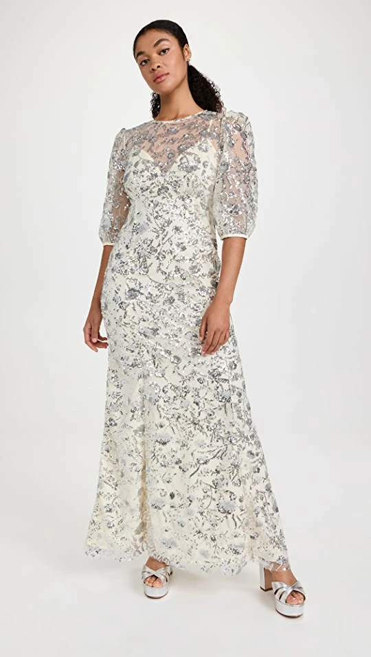 Buy β Self Portrait Champagne Sequined Maxi π Dress β€οΈ