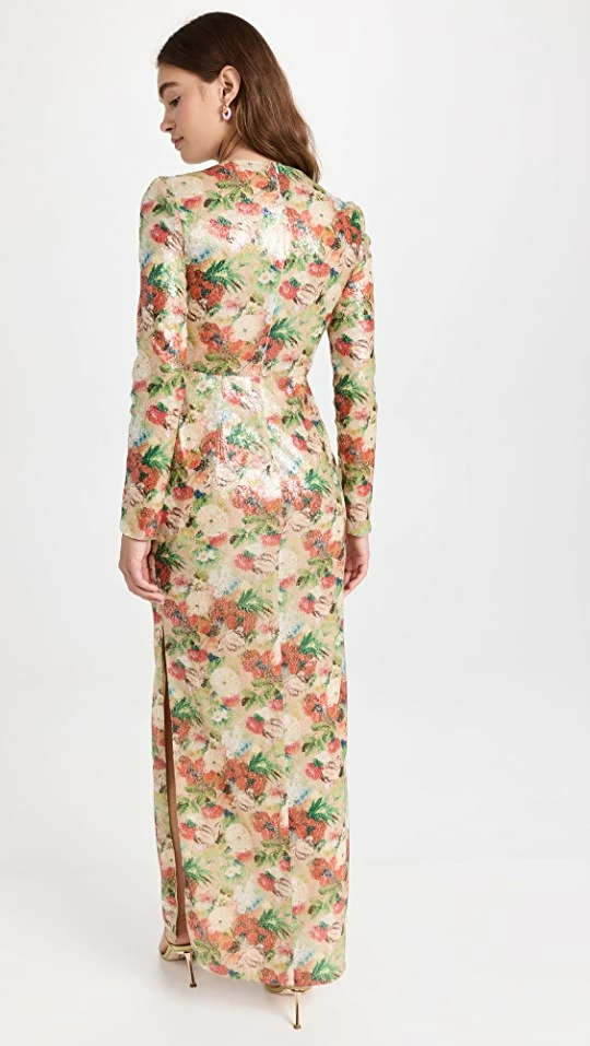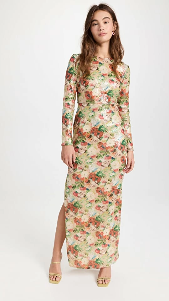 - Allover floral sequin embellishments