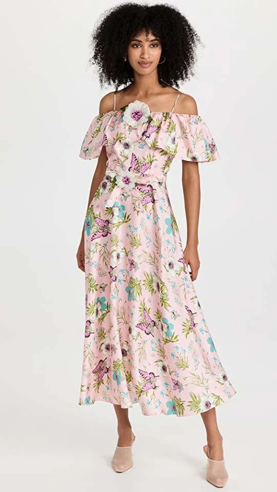 - Off-shoulder elastic neckline and short butterfly sleeves
