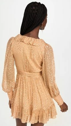 Best Pirce π Zimmermann Lurex Wrap Mini π Dress Caramel π§¨
