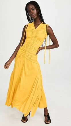 Best Sale π Proenza Schouler Viscose Jersey Sleeveless Cinched π Dress Yellow π―
