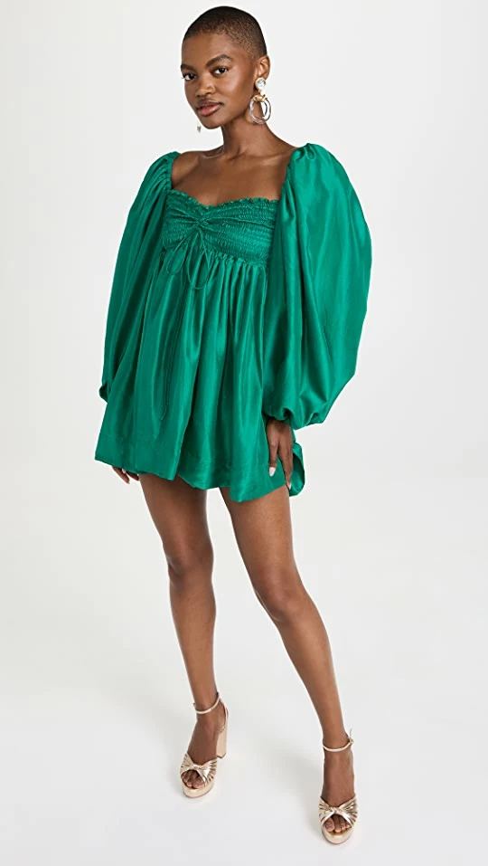 - Adjustable ruching at smocked elastic bodice